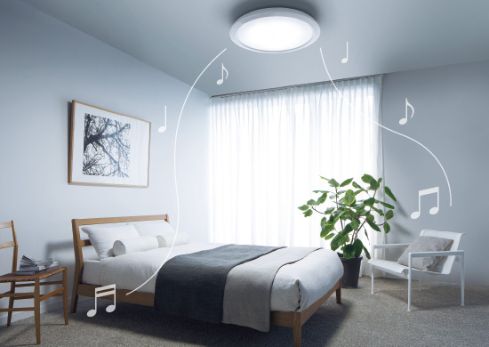 このように、天井から光と音が降り注ぎ、お部屋全体を包み込んでくれます。
