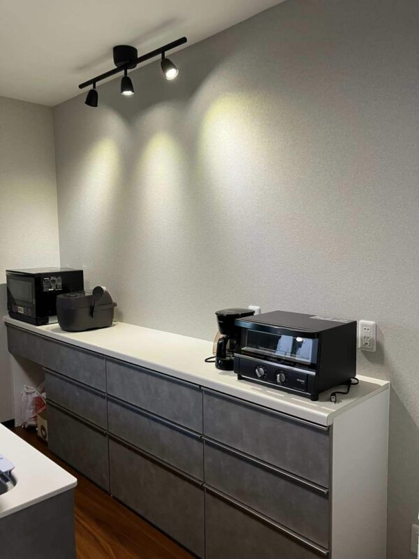 2世代でお住まいのご自宅のため、キッチンとカップボードを併用して楽しく料理ができる空間をご提案しました。