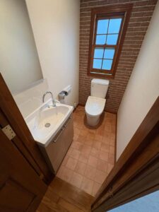 トイレはLIXILのアメージュ便器を、別途手洗い器はLIXILのリフラを取付けしました。