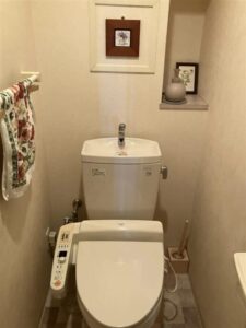 組み合わせ式トイレから、収納一体型トイレ「TOTO レストパル」へのリフォーム事例をご紹介します。