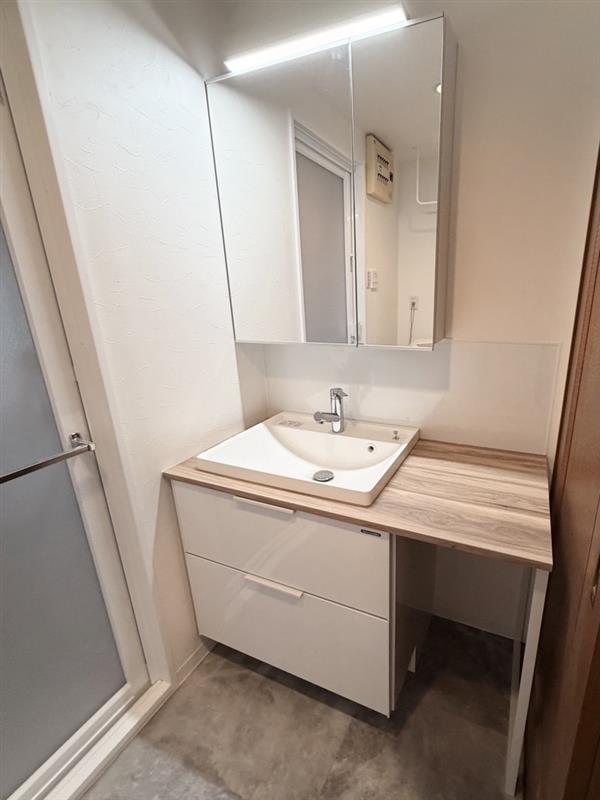清掃性の高い造作風洗面化粧台です。