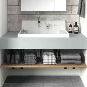 豊富なカラーのカウンターと大型の洗面ボウルを組み合わせて、造作洗面台のようなスタイリッシュで使いやすいカウンター洗面にすることが可能です。