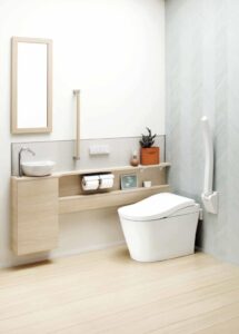 また、家具のようなキャビネットと二段カウンターが一緒についてくるため、トイレをぐんとおしゃれな空間にすることも可能です。