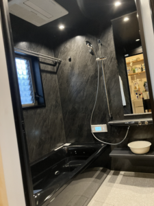 黒を基調とし、とってもシックで高級感のあるユニットバスになりました。