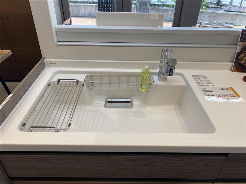 Panasonic独自のスゴピカ素材(有機ガラス系)と段差の少ない形状でお手入れがしやすい『ラクするーシンク』を採用、はっ水・はつ油成分配合でキレイが続きます。