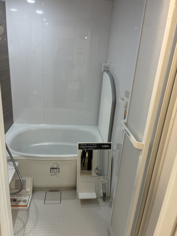 LIXILのユニットバスの特徴の1つであるマグネットアイテムを多数取付しております! マグネットの鏡など、カタログだけではなかなかイメージしづらい部分を直接ご確認いただけます。