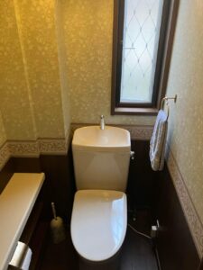 元のトイレも20年以上未改装とは思えないほどキレイでしたが、施主様と共にこだわって今回はトイレの機能アップと内装もリフォームいたしました。