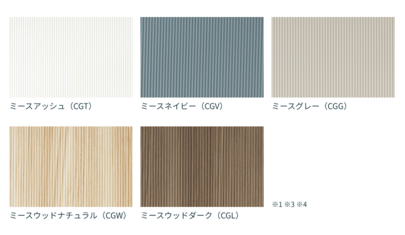 単色3種類・木目2種類の全部で5種類ですが、単色は可愛らしい雰囲気で、木目柄は立体感があってやわらかい雰囲気を味わうことができます。