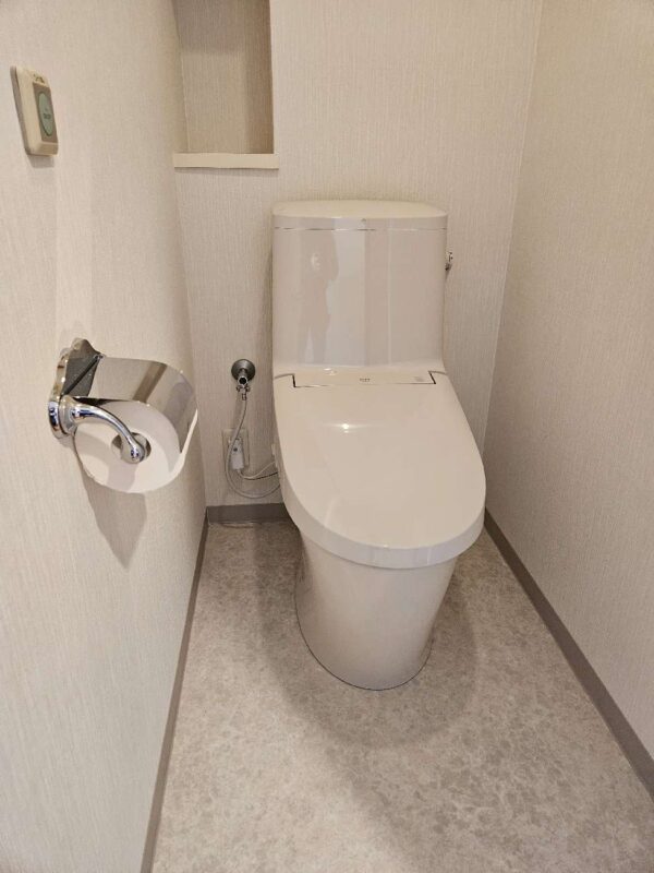 今回はトイレの交換、内装貼替工事の施工事例です。