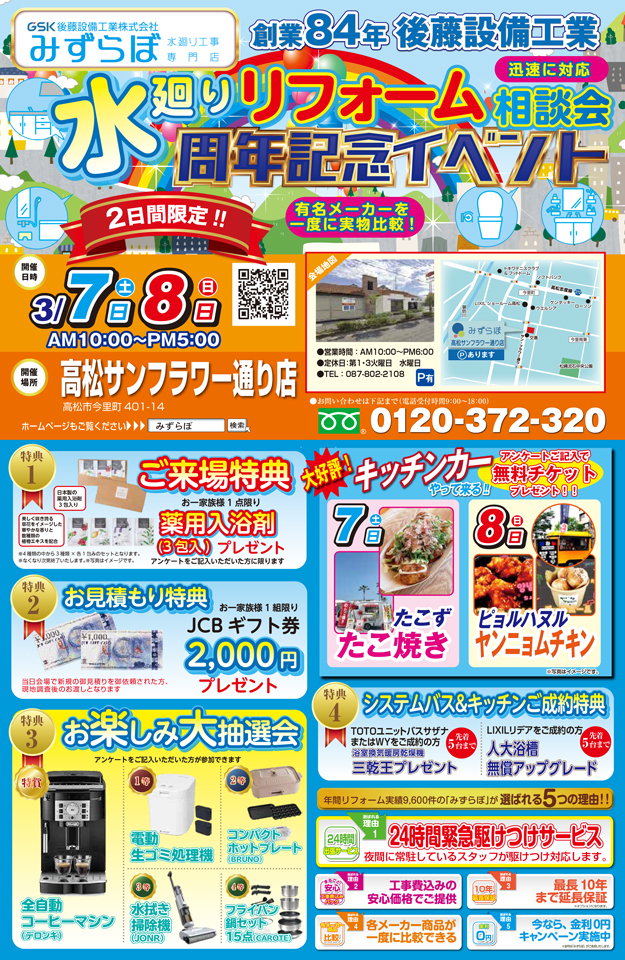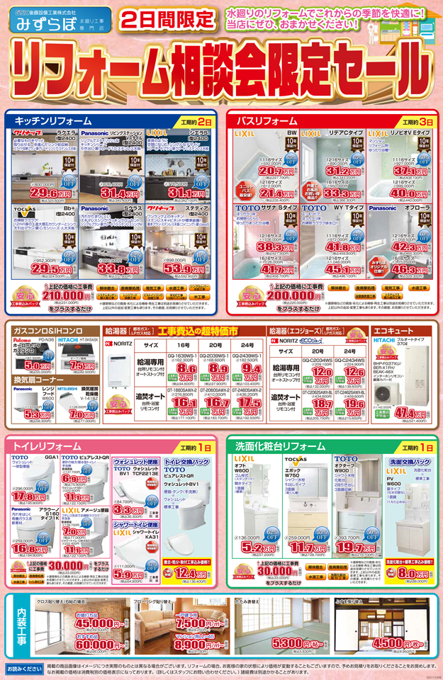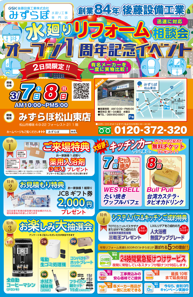 みずらぼ「松山東店」「高松サンフラワー通り店」では、2026年3月7日(土)・8日(日)に水廻りリフォーム相談会を開催いたします。