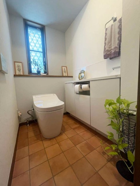 カフェ風な雰囲気の出るトイレ空間を目指し、施主様のご希望でお洒落な床の色味を選定。